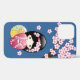 Spring Kokeshi Doll - Cute Japanese Geisha on Blue Case-Mate iPhone Case