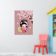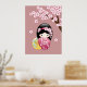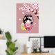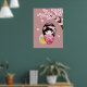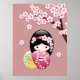Spring Kokeshi Doll - Cute Japanese Geisha on Pink Poster