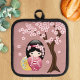 Spring Kokeshi Doll - Cute Japanese Geisha on Pink Pot Holder