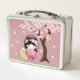 Spring Kokeshi Doll - Cute Japanese Geisha Pink Metal Lunch Box