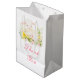 Pretty baby shower gift bag with an adorable lamb and pink and yellow flowers. Perfect for a spring or summer baby shower. The words can be changed to suit your own details or requirements