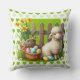 An Easter Lamb With Basket Of Eggs On A Green Throw Pillow With Green Hearts For Your Easter Decor