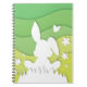 Spring landscape, easter bunny on grass notebook