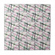 This ceramic tile has a design of repeating blocks of lines that that cross each other in pink, darker pink, light green, darker green, cream, and black. If you like the design but prefer different colours, message me.