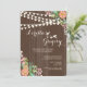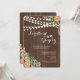 Strung lights and clusters of pink, blue and white flowers against a chocolate, wood-grain background make a lovely invitation perfect for an outdoor bridal shower, engagement party, anniversary celebration and more. (<a href='http://www.freepik.com/free-vector/floral-wedding-invitation-with-wood-texture_1048031.htm'>Designed by Freepik</a>). <br/><br/>The card is easy to customise with your wording, font, font colour and choice of six paper types.<br/><br/>Not exactly what you're looking for? All our products can be custom designed to meet your needs at no extra charge.<br/><br/>Simply contact us at askcottonlamb@gmail.com<br/><br/>Coordinating products available: