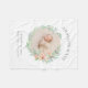 A beautiful keepsake baby blanket with watercolor botanical floral wreath in pretty shades of green and peach. Personalise the design with baby's photo, name monogram, birthday and birth stats or other custom text. Use the design tools to add more photos, change text fonts and colours to create a unique one of a kind design. Custom birth stat blankets make a great gift for new parents!