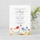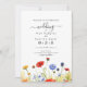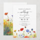 This gorgeous wedding invitation card is a breathtaking and customisable piece that captures the essence of a meadow adorned with watercolor flowers in shades of yellow, blue, and red-orange. The card features a beautifully crafted design that showcases watercolor illustrations of wildflowers gracefully arranged to mimic a meadow in full bloom. The imagery is intricate, capturing the delicate details of each flower. The predominant colour scheme includes vibrant shades of yellow, creating a warm and cheerful backdrop. Interspersed among the yellow flowers are delicate blue blooms and pops of red-orange, creating a harmonious and visually stunning colour palette.