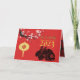 Beautiful Chinese illustration of a city by spring night with cherry blossoms, lantern (with rabbit ideogram), "Happy Chinese New Year" in Chinese and English and customisable 2023 + a rabbit "paper-cut" (image printed). Design on horizontal greeting card with the complete illustration inside. Available in vertical design. Matching holiday postcard and more... Perfect for Chinese New Year of The Rabbit 2023.