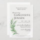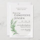 Elegant bridal shower invitation with white, cream, and a sprig of greenery. Classic and clean elegance.