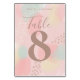 Enhance the aesthetic of your wedding reception with our captivating table number sign, showcasing dreamy modern art in a charming pastel palette. Soft shades of peach and pink mingle harmoniously with accents of sunny yellow, lush green, and subtle bronze tones, creating a whimsical yet sophisticated ambiance. Guide your guests effortlessly through your celebration with these enchanting table number signs, perfectly complementing the romantic atmosphere of your special day. Easily personalise with your details. —The Spotted Olive™ on Zazzle