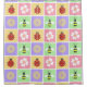 Pastel pink, yellow, purple, and green squares are adorned with ladybugs, dogwood blossoms, daisies, and honeybee and then bordered by tight white stitching to create a fun and sweet spring patch-like pattern.