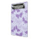 Spring grey-blue seamless pattern with transparent violet butterflies and curls (vector EPS 10) © and ® Bigstock® - All Rights Reserved.