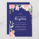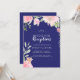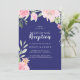 This spring peony navy wedding reception only invitation is perfect for a classy event. The modern spring or summer design has a rustic country feel, featuring elegant watercolor pastel pink peonies and sage green leaves on a navy background.
