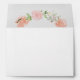 This spring peony wedding invitation envelope is perfect for an elegant wedding. The classy spring or summer design on the back and flap features modern watercolor pastel pink peonies and sage green leaves with a touch of rustic country.