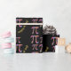 Unique Colourful illustrated Flowers nestled in a Pi Symbol patterned on a black background. Cute Math Themed Gift Wrap.