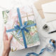 Trendy watercolor pink, mint and faux gold glitter succulent plant terrarium wrapping paper.