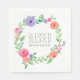 Add a warm and meaningful touch to your church ladies luncheon with these elegant floral wreath paper napkins with the quote "blessed beyond measure." Featuring the same soft watercolor florals and faith-inspired design as the coordinating collection.