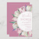 Elegant floral design featuring modern handwritten style script and spring watercolor pink and white tulips. The text can easily be personalised for a unique one of a kind design for your special day.