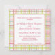 Colourful luxury describe this square invitation that is perfect for rehearsal dinners, weddings, dinner parties, spring gatherings, or any event. Square 5.25" x 5.25" invitation featuring a spring plaid background with inset text area framed in green and pink. Customise with your own text. Comes with white envelopes or choose our matching envelopes to complete your invitation package.