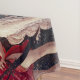 Years ago I got a matching runner from elsewhere and was so thrilled to find this same pattern offered as a tablecloth. The material is very high quality and it is well-constructed. Also it got here just in time for my party tomorrow! Would buy from this seller again. Colors are very sharp. It’s perfect. Well done