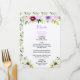 This beautiful and elegant wedding menu features watercolor purple flowers and foliage. The text combines handwritten script and serif fonts for a stylish and modern look. This is perfect for a spring rustic wedding.