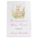 Pretty baby shower gift bag with an adorable rabbit and pink and yellow flowers. Perfect for a spring or summer baby shower. The words can be changed to suit your own details or requirements