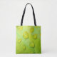 This Tote Bag features an original abstract photograph by ZoeSPEAK of raindrops on a leaf. In the closeup photo, we see the texture and veins of the leaf magnified in the contours of the water droplets. The shiny yellow green leaf reflects the blue and yellow of the sky and sunlight.