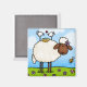 "Spring sheep" - part of the "Sheep of all seasons" series. A cute woolly lamb in a fresh flowery meadow with nesting birds and curious bee.