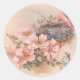 Soft pink Spring theme with lovely wild roses framing a next and little bird sitting on a twig close by.