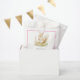 Pretty baby shower favour bag with an adorable squirrel and pink and yellow flowers. Perfect for a spring or summer baby shower. The words can be changed to suit your own details or requirements