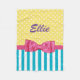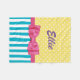 A cute and colourful spring coloured fleece blanket with turquoise stripes and yellow polka dots designed just for the girly girl with a bright personality. This girly design is embellished with a bright pink ribbon tied into a stylish bow. Personalise by adding your name in chic purple. Flat printed image, NOT actual ribbon.