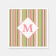 Spring Stripes Personalised Monogrammed Design. Stripes in shades of pink, green, and white. The monogram in dark pink coordinating with the dark pink in the design and the border of the diamond in the centre of the design. Perfect for a princess, little girl, teen girl, or girlie girl of any age.