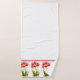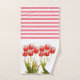 Decorate your bathroom for the spring season with this pretty tulip flower pattern towel set. This cheerful floral pattern is perfect for Easter or Mother's Day decor. The design features a red tulip illustration on a white background. The hand towel has contrasting red and white stripes.