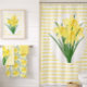 Add cheerful ambiance to your bathroom decor with this yellow daffodil bouquet-designed shower curtain. This shower curtain features a yellow and white striped background with a daffodil flower design in the centre. Accessorise your bathroom with a coordinating daffodil flower bath towel set, vies at my Bathroom collection. Know that a shower curtain with bath accessories is a great way to update for the spring season.