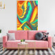 Very impressive product! The canvas is sturdily made. It features a saw tooth hanger on the back, making it easy to "try out" the canvas in several rooms until I found the best location. It attracts good comments from my friends. I love it! The printing is wonderful! Colors are as bright and crisp as they appeared on the website.