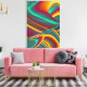Very impressive product! The canvas is sturdily made. It features a saw tooth hanger on the back, making it easy to "try out" the canvas in several rooms until I found the best location. It attracts good comments from my friends. I love it! The printing is wonderful! Colors are as bright and crisp as they appeared on the website.
