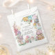 Flutter & Twirl and Celebrate the Birthday Girl with thiese Cute Floral Little Fairy Birthday Favour Bags. Design features a botanical garden scene with summer and spring watercolor flowers and botanical greenery, a magical little fairy house with sweet little floral fairies. Simply personalise name and age.