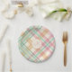 For your springtime or summertime entertaining ... colourful pastel colours paper plates (7") in mint and pink plaid with orange, raspberry and dark mint accents on an off-white background with customisable monogram - by katz_d_zynes