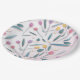 Beautiful spring paper plates displaying colourful tulips, daisies, and white background with teal markings. See store for matching themed tableware.
