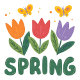 Beneath the bouquet, the word “SPRING” appears in bold, green capital letters, giving the whole design a friendly, welcoming vibe.