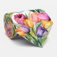 Spring Tulips Colourful Rainbow Watercolor Floral Tie