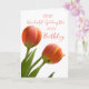 Birthday card for goddaughter with orange and pink spring tulips and thoughtful verse.