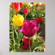 A beautiful variety of spring tulips at the Wooden Shoe Tulip Farm in Woodburn, Oregon. An up-close view of a pretty pink-purple tulip with other colourful tulips surrounding it. Photo taken April 2018.