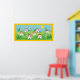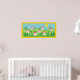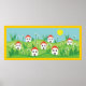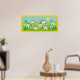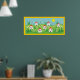 Spring village, red roof houses, flowers and the sun in the sky custom Poster with a yellow border.