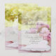 Adorable and editable wedding design perfect for modern wedding or spring wedding with a beautiful fresh spring cherryblossoms an old loveletter and pink heart on pink white dotted background in a wonderful green backlight.