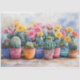 Delightful decoupage tissue paper showcasing a spring-inspired watercolor design of cacti and blooming flowers, perfect for adding a fresh and artistic touch to crafts, gift wrapping, and DIY projects.