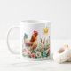 Mug featuring a watercolor Hen in a spring landscape. Customisable.