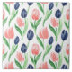 Spring Watercolor Navy Pink Tulip Pattern Tile