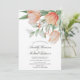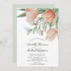 Spring wedding invitations, featuring elegant peachy shades of orange in florals, tulips and botanical greenery. The design has a modern wedding invitation template which is easily customised. All font styles, sizes and colours can be changed by clicking on the customise further link aftter personalizng. .
