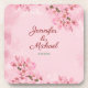 Celebrate your spring wedding in style with a pink floral theme watercolor coaster. Perfect as personalised wedding favours or table decor. Soft floral charm for garden weddings, bridal showers, or romantic spring themes. Customisable with your names and date!